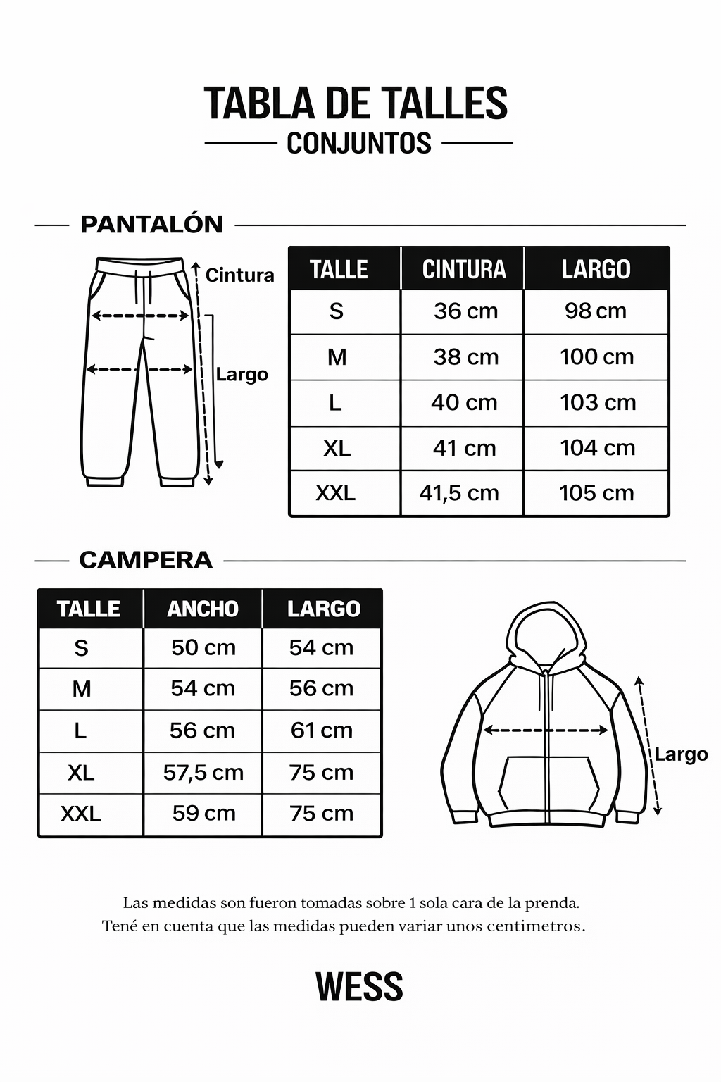 Medidas tomadas en prenda apoyada sobre superficie plana. Pueden variar levemente.
