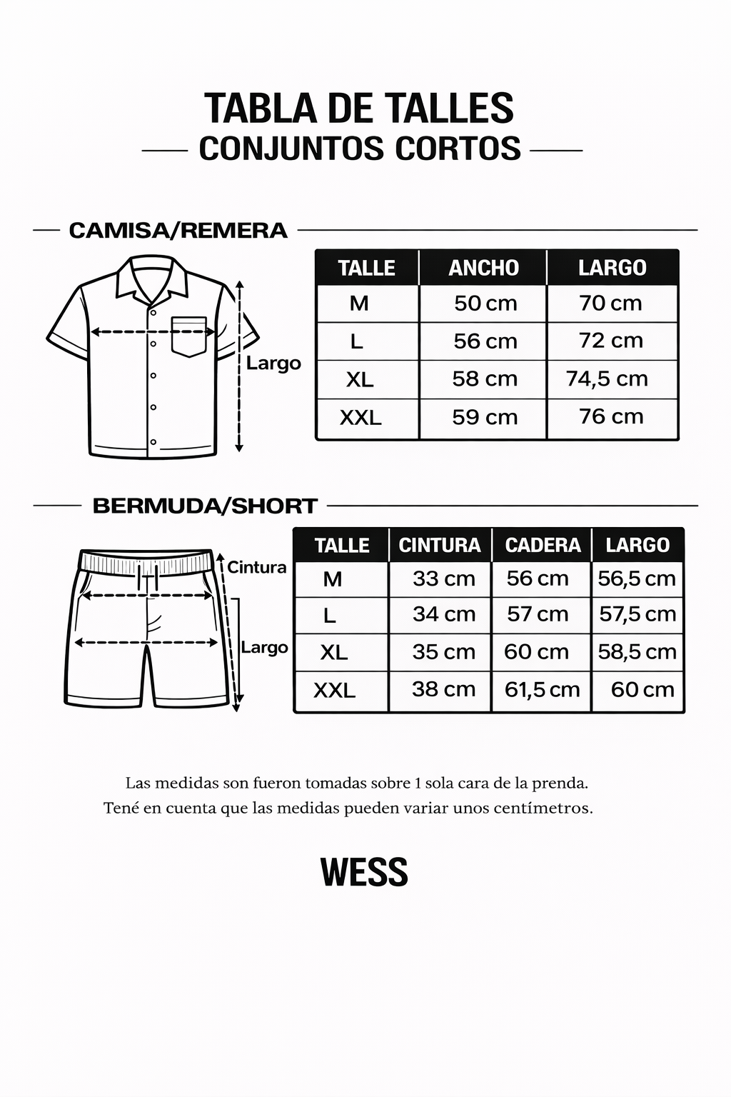 Los shorts son una parte esencial de cualquier conjunto de lino. A continuación, se presentan las medidas específicas: